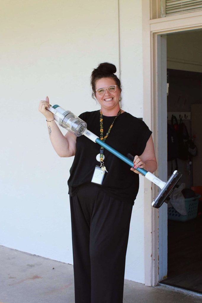 Among the many useful school supplies, teachers received noise canceling headphones, a new padded gym mat for in-class breaks, EXPO markers, personal white boards, pens and pencils, calculators, timers, and functional learning tools like a vacuum, recycling bins, a paper shredder, and more. To foster more dynamic learning sessions, speech therapists received switch adapted Bluetooth speakers, personal whiteboards, and learning games.